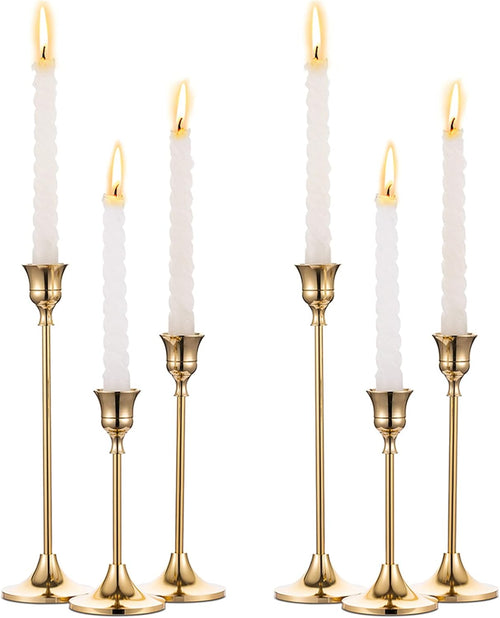 2 Sets(6 Pcs) Brass Gold Metal Taper Candle Holders Candlestick Holders, Vintage Modern Decorative Centerpiece Candlestick Holders for Table Mantel Wedding Housewarming Gift