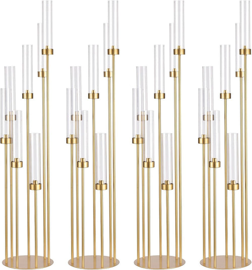 4Sets Floor Candelabra Tall 7 Arm Centerpieces for Wedding, 48" Tall Metal Candlestick Holders with Acrylic Lampshade for Home Party Decor Fit LED Taper Candles candelabros para centros de mesa